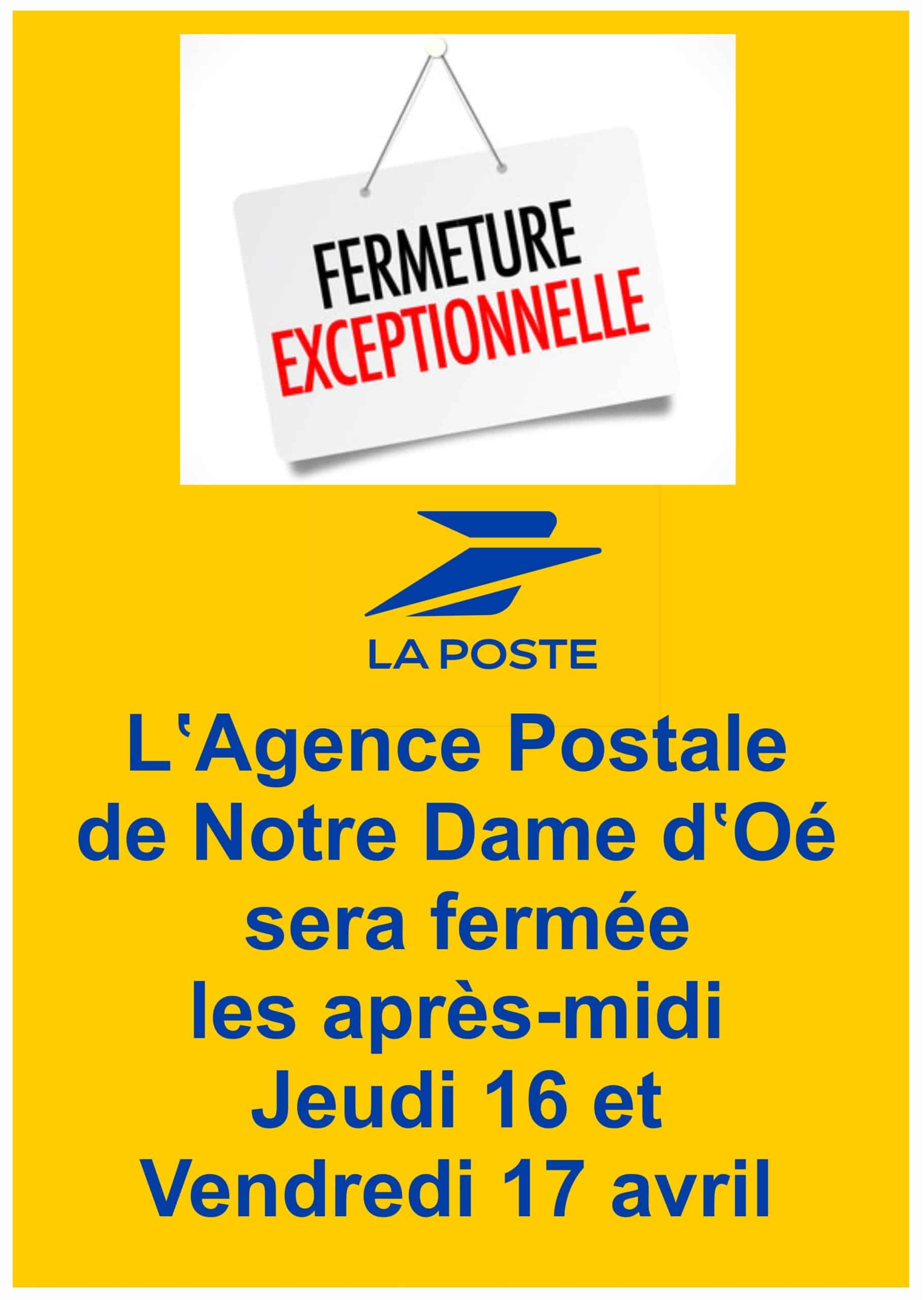 Agence Postale : fermeture exceptionnelle