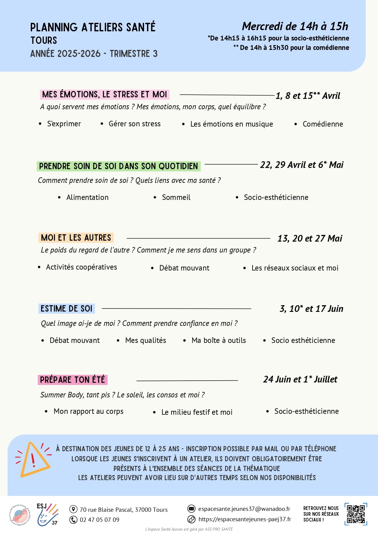 Les Ateliers Santé de l'Espace Santé Jeunes 37