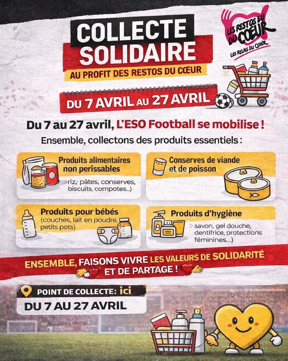 Parce que le football, c’est bien plus que du sport, c’est aussi des valeurs de partage, solidarité et engagement, nous comptons sur toute la famille ESO pour répondre présent 🙌