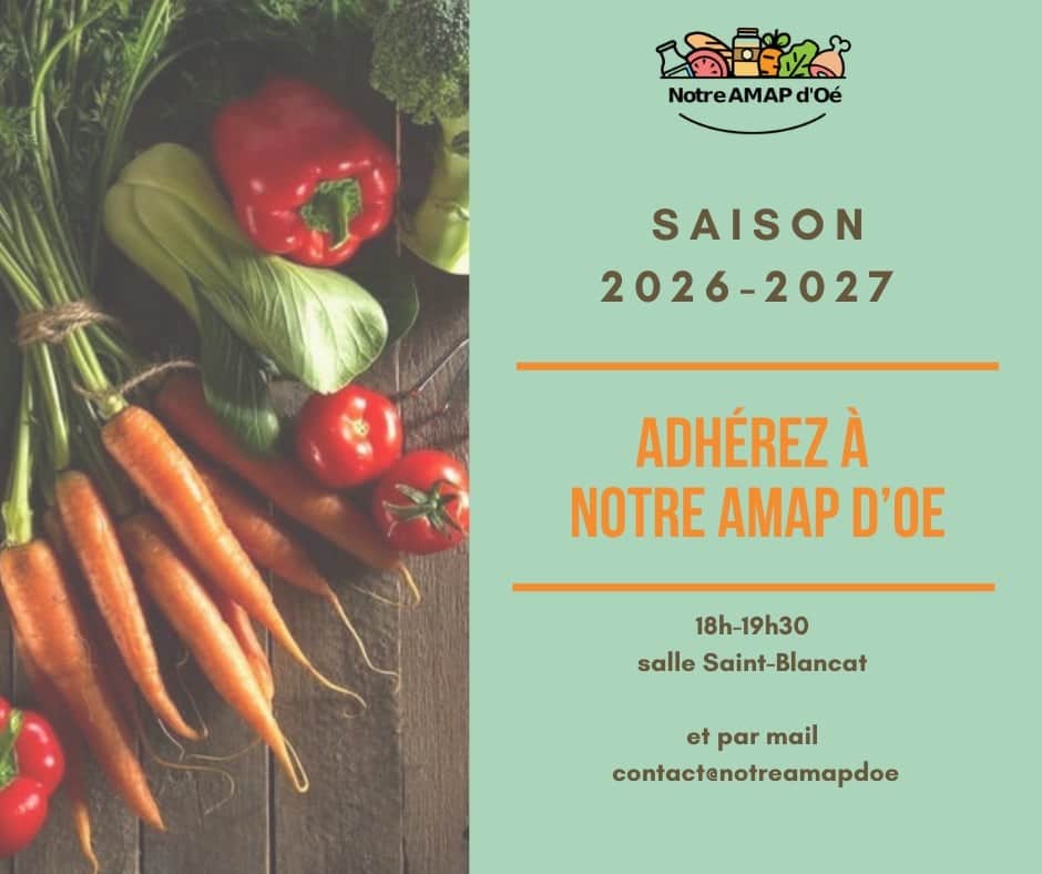 Si vous souhaitez bénéficier de l'abonnement aux paniers de légumes dès le printemps 2026, c'est le bon moment pour adhérer à Notre AMAP d'Oé.