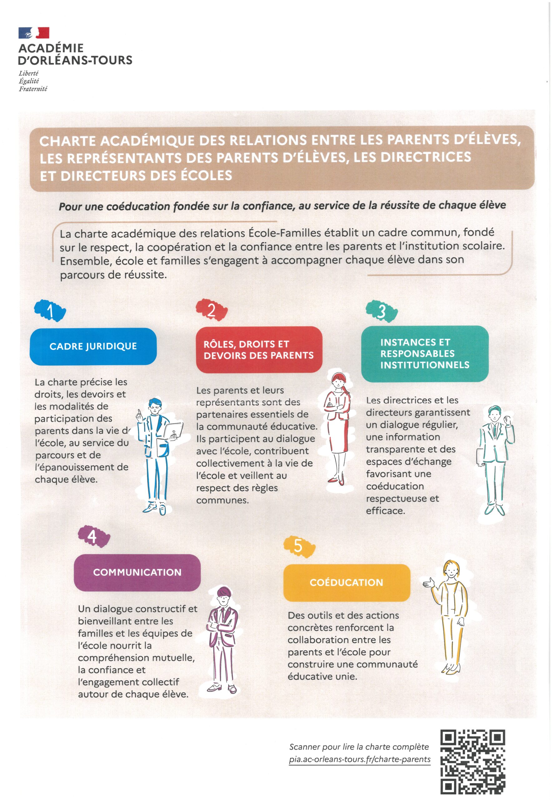La charte académique des relations école‑familles établit un cadre commun, fondé sur le respect, la coopération et la confiance entre les parents et l’institution scolaire. Ensemble, école et familles s’engagent à accompagner chaque élève dans son parcours de réussite.