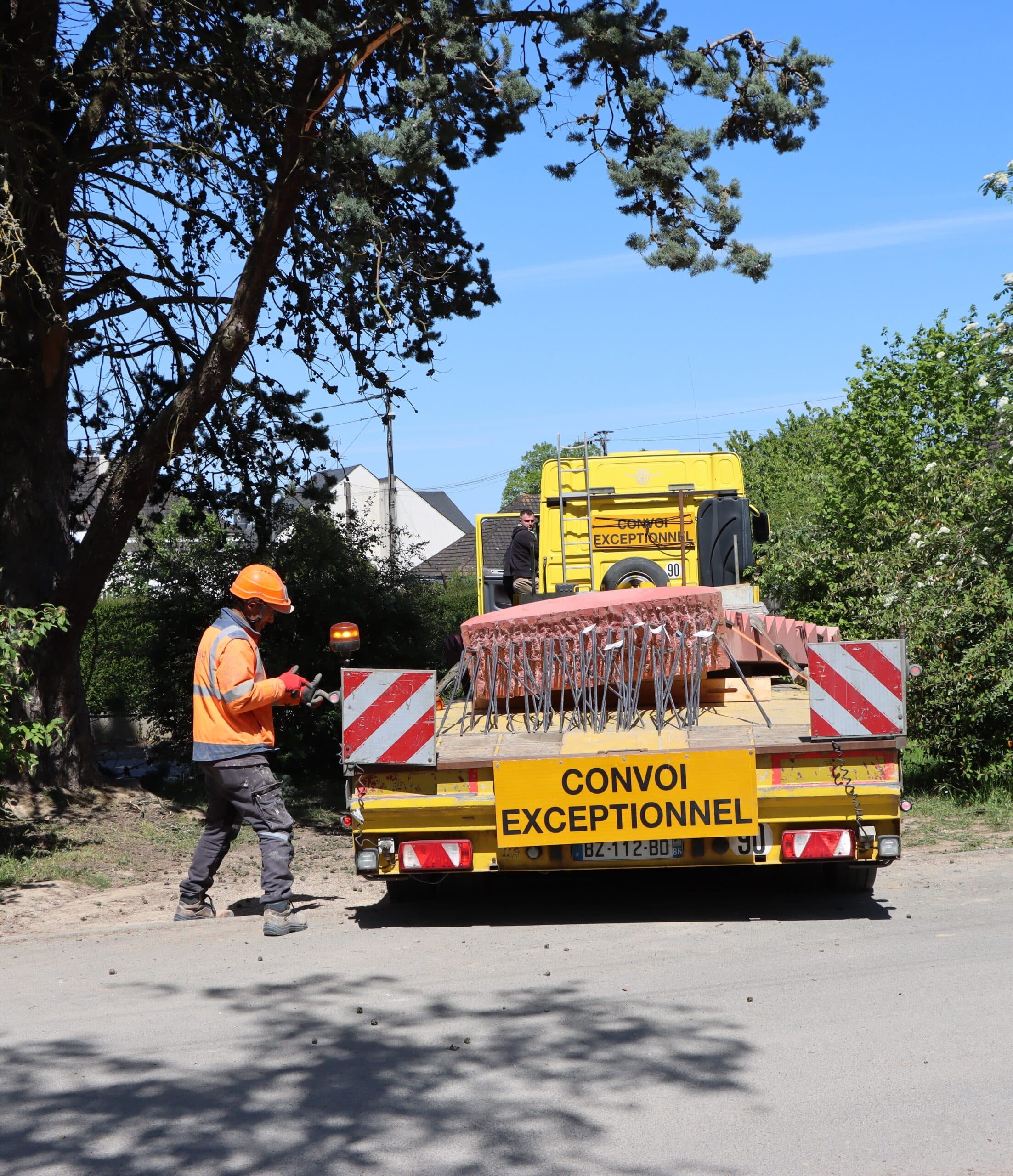 L’arrivée du convoi a marqué un moment fort du chantier, attirant l’attention des riverains.